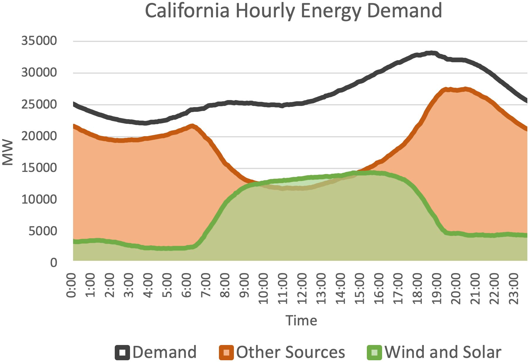 Renewable electricity from solar and wind is intermittent. Solar output peaks at midday, but demand peaks in the evening — a mismatch known as the duck curve.8 Grid-scale energy storage is the missing piece for full renewable adoption.