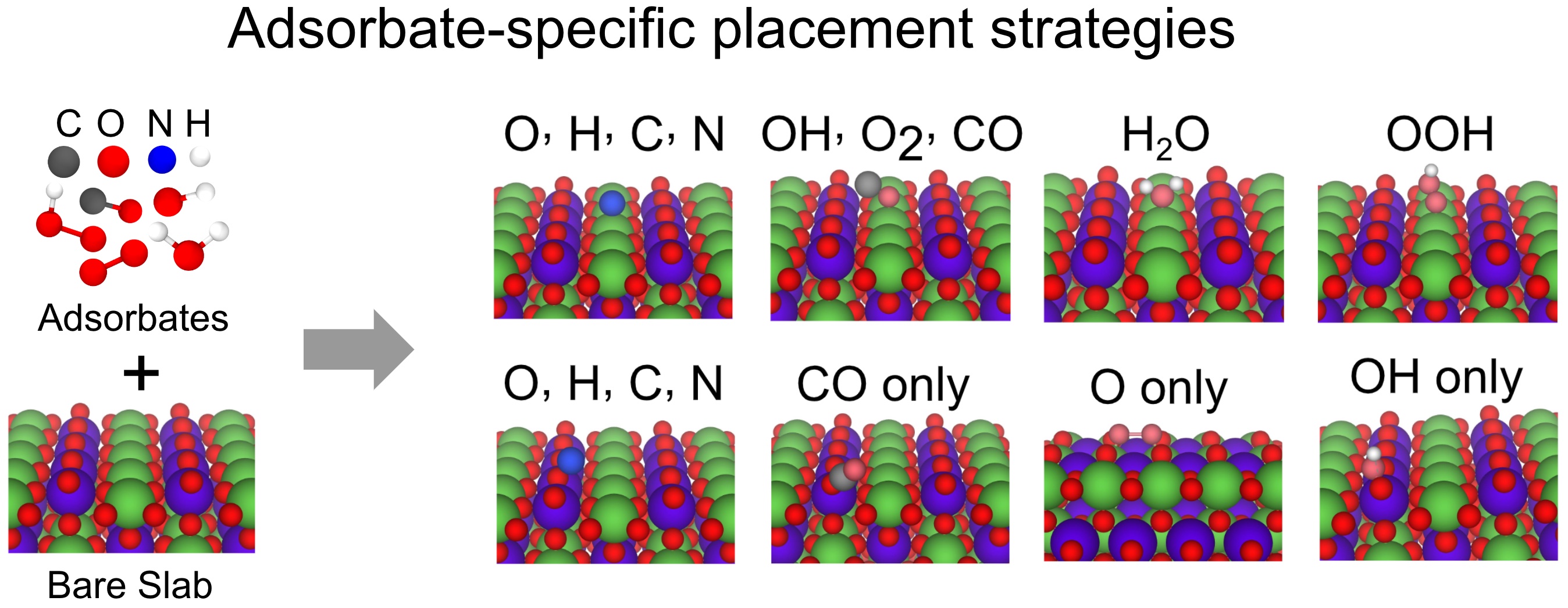 - For a given (surface, adsorbate) pair, generate many candidate initial configurations by random placement.