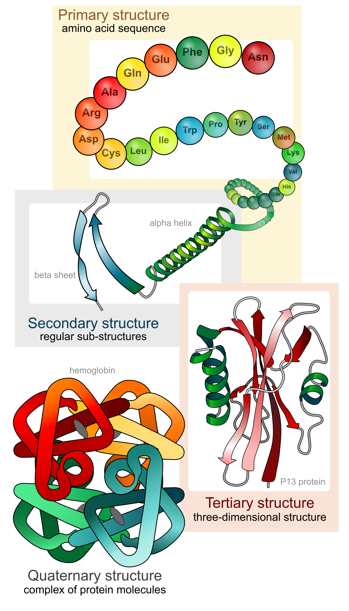 - Protein structure levels: Wikimedia Commons, public domain.
