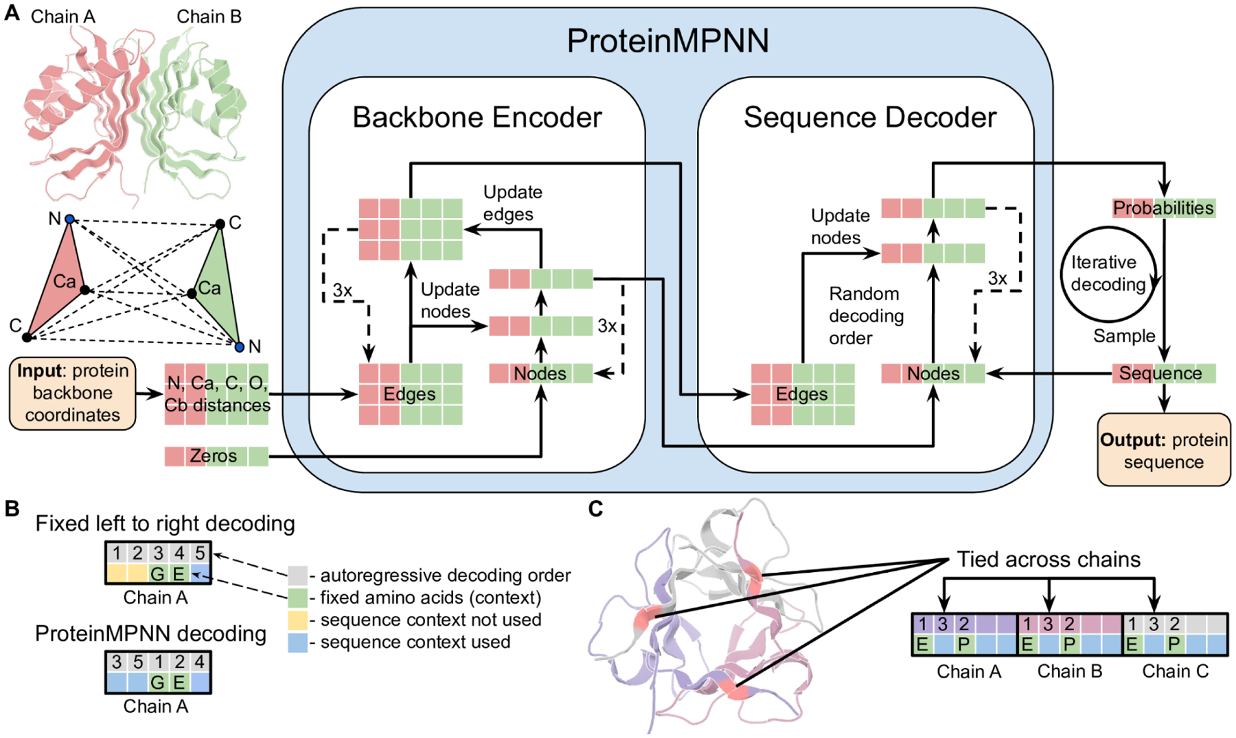 - ProteinMPNN overview: Figure 1 from Dauparas et al. (2022), via PMC9997061.